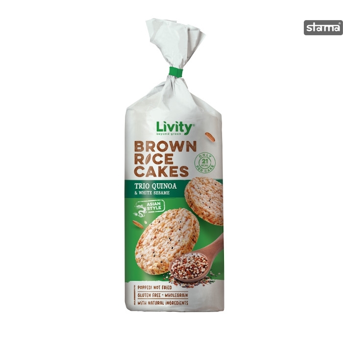 WHOLEGRAIN BROWN RICE CAKES LIVITY TRIO QUINOA AND WHITE SESAME 100g